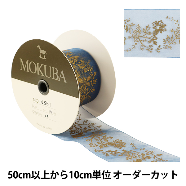 【数量5から】 リボン 『プリントオーガンジーリボン 46番色 4561-46』 MOKUBA 木馬