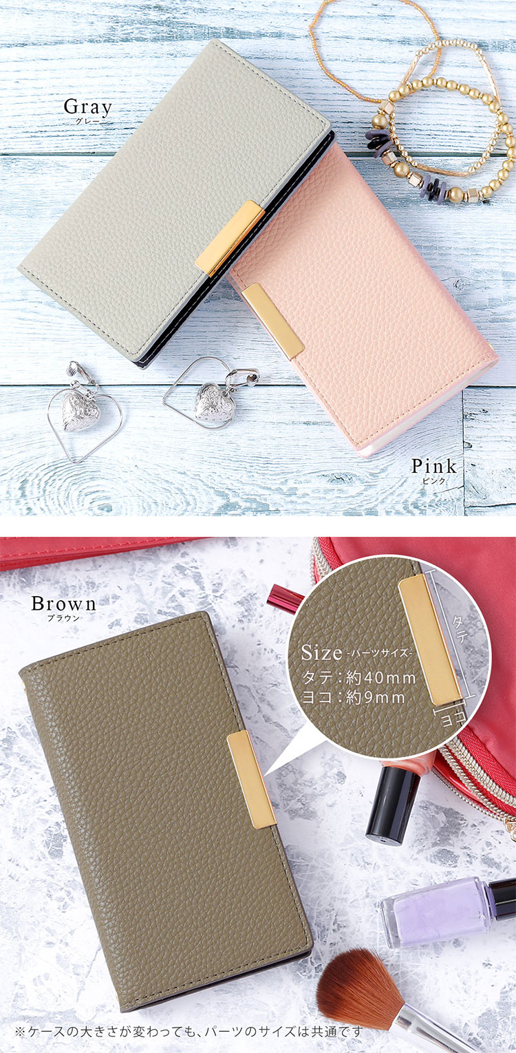 ゴールドフレーム付き 大人シンプルレザー調手帳型ケース×全5色