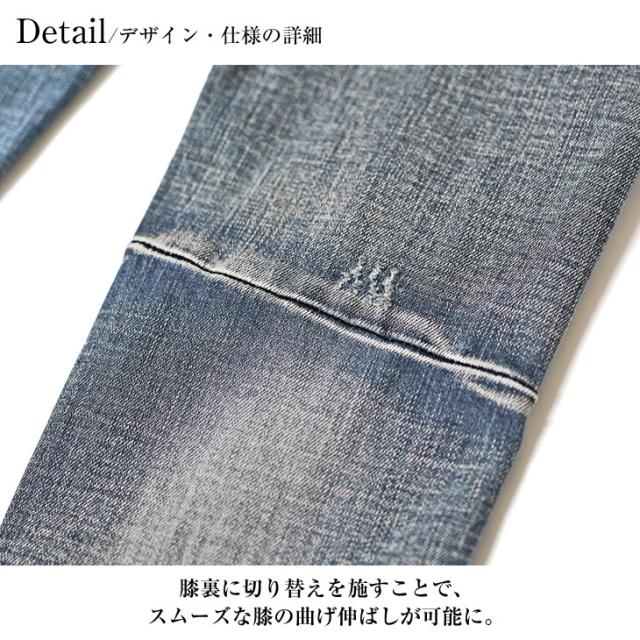 ウエストには若干のゆとりがありますが、太ももやふくらはぎ周りはピッタリなサイズ感でした。伸縮性があり、関節部分にダメージ加工が施されているため、突っ張る感じはなかったです。