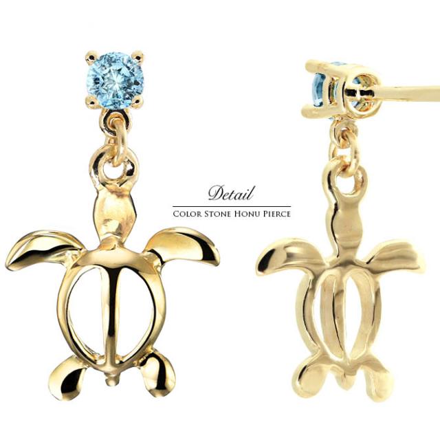ハワイアンジュエリー ピアス ホヌ ピアス 3月の誕生石 アクアマリン 幸せ運ぶホヌピアス 揺れるカラーストーン 片耳(1個)購入可 K14イエロー ピンク ホワイト 選べる 14K パーツ シリコンキャッチ プレゼント ホワイトデー 卒業式 入学式 【品番:GE501-3】
