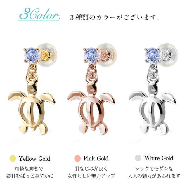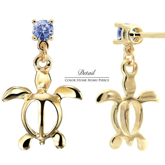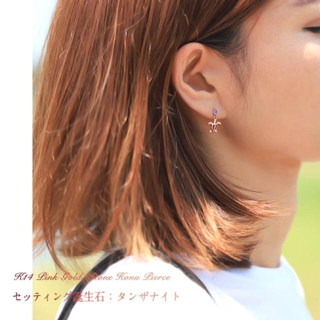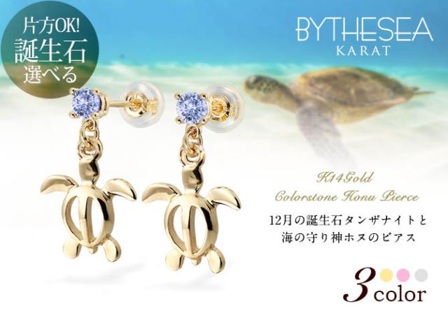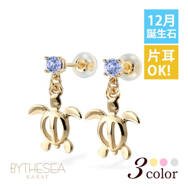 ハワイアンジュエリー ピアス ホヌ ピアス 12月の誕生石 タンザナイト 幸せ運ぶホヌ カラーストーン 片耳(1個)購入可 K14イエロー ピンク ホワイト 選べる 14K パーツ シリコンキャッチ 彼女 妻 女性 レディース プレゼント 母の日 【品番:GE501-12】