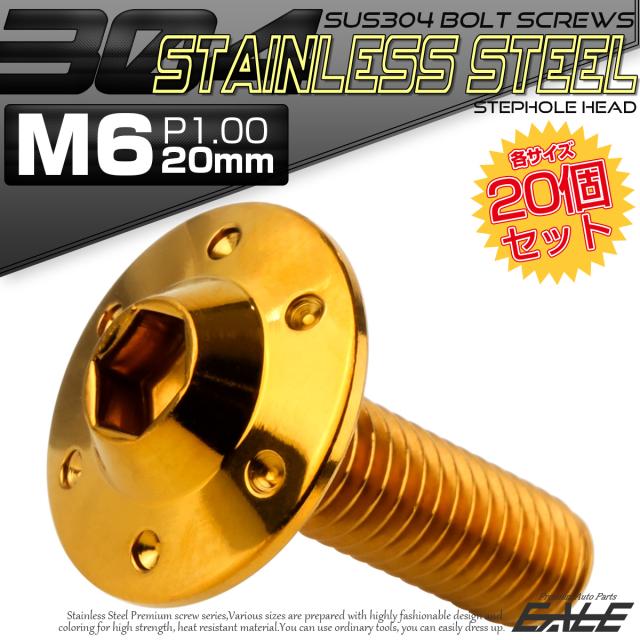 20個セット ボタンボルト M6×20mm P1.00 ステップ ホールヘッドボルト フランジ付 六角穴 SUS304 ステンレス ゴールド TR0193-20SET