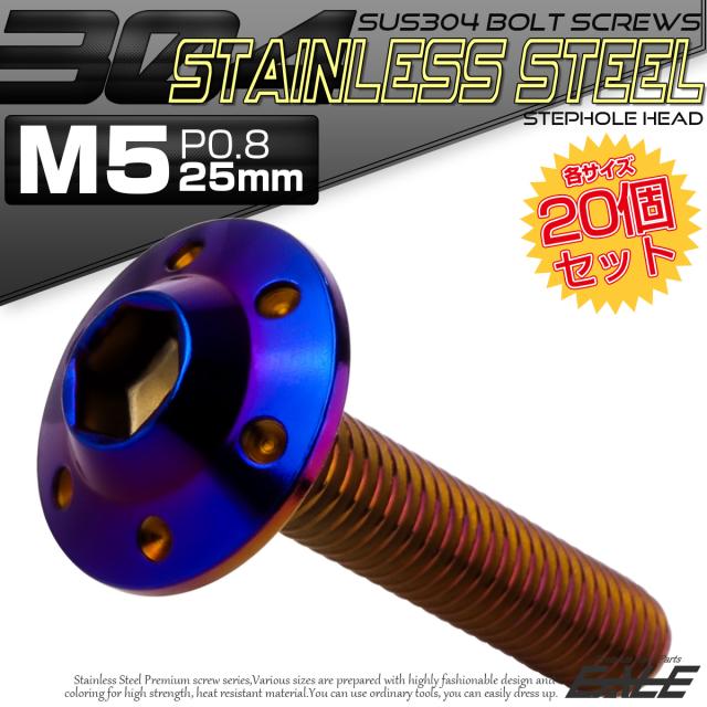 20個セット ボタンボルト M5×25mm P0.8 ステップ ホールヘッドボルト フランジ付 六角穴 SUS304 ステンレス 焼きチタン TR0203-20SET