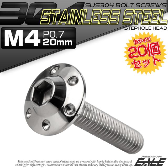 20個セット ボタンボルト M4×20mm P0.7 ステップ ホールヘッドボルト フランジ付 六角穴 SUS304 ステンレス シルバー TR0171-20SET