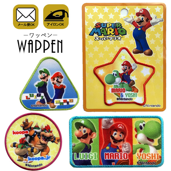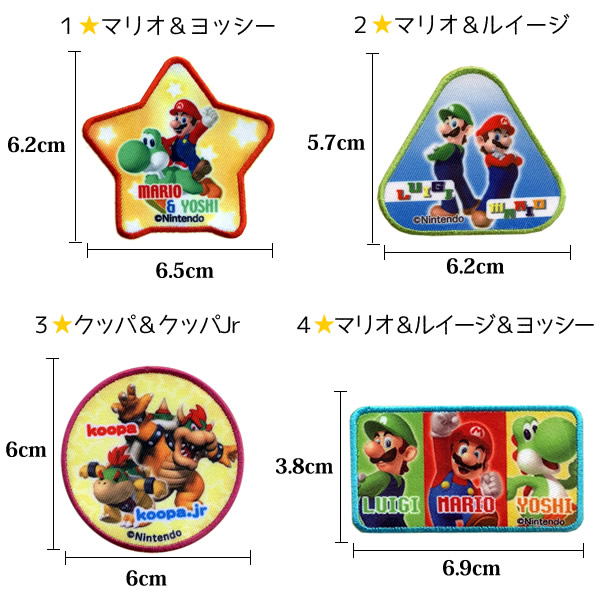 スーパーマリオ ワッペン 刺繍 アイロン接着 キャラクター マリオ ルイージ ヨッシー クッパ アップリケ 手芸 入園 入学 母の日 プレゼント ギフト