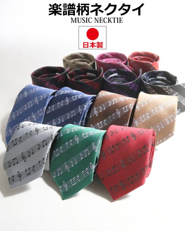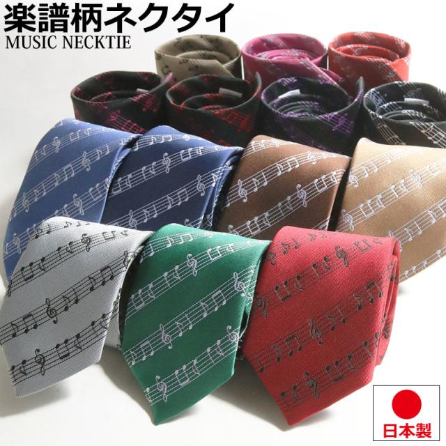 日本製 楽譜柄 音符柄 音楽柄 ネクタイ 幅70mm幅 ベーシックサイズ フォーマル ビジネス フォーマル 結婚式 出席 二次会