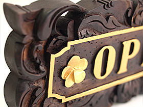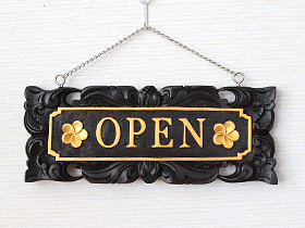 バリの伝統の技が光る、彫刻プレートです。OPEN/CLOSEDのリバーシブル(両面仕立て)なので、1枚で2枚分使えてお得です。営業中のサインに、手作りの風合い豊かなプレートはいかがでしょうか?