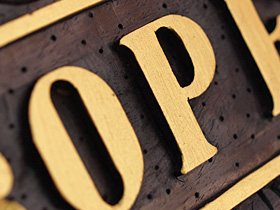 文字は貼り付けでは無く、周りを彫って立体的にしています。文字の周りのランダムな点々は、文字を立体的に見せる工夫ですと職人さんが言っていました。こだわってくれています。