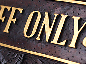 バリの伝統の技が光る、彫刻プレート(STAFF ONLY)です。従業員専用ルームのサインとして手作りの風合い豊かなプレートはいかがでしょうか?