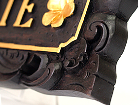 文字は貼り付けでは無く、周りを彫って立体的にしています。文字の周りのランダムな点々は、文字を立体的に見せる工夫ですと職人さんが言っていました。こだわってくれています。