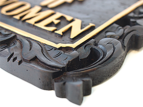文字はMENとWOMENで、イラストも彫刻されていて、分かりやすいサインプレートです。
