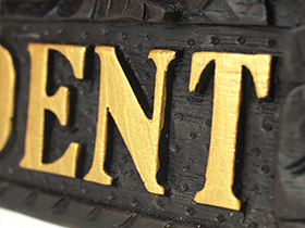 こちらのサインプレートは、個別オーダーではなく、完成品からご購入いただけます。文字はPRESIDENT(社長)です。PRESIDENTは社長以外に、学長、総長、会長、総裁、頭取という意味もあります。