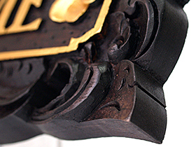 文字は貼り付けでは無く、周りを彫って立体的にしています。文字の周りのランダムな点々は、文字を立体的に見せる工夫ですと職人さんが言っていました。こだわってくれています。