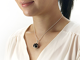 携帯電話に付けたサイズイメージです。 ネックレスに付けた時のサイズイメージ。