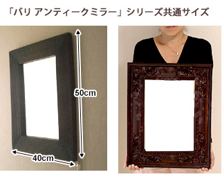 職人が手作業で彫ったデザインが、とてもバリを感じさせてくれるアンティークテイストのミラーです。インテリアとして飾っていただくのにちょうどいい大きさに仕上げました。