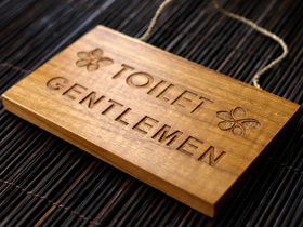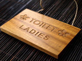 アジアンリゾートやバリのホテルでは、トイレの表札に木製のプレートが使われて、心温まる感じがします。