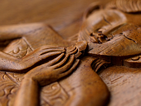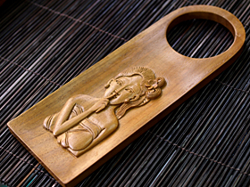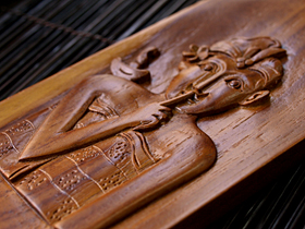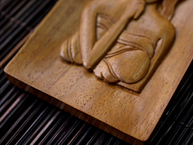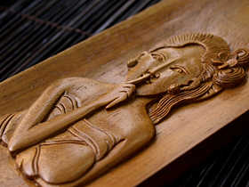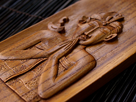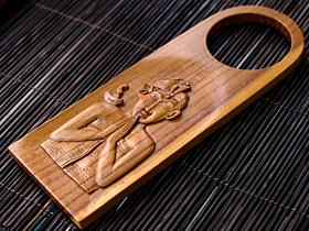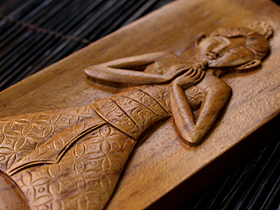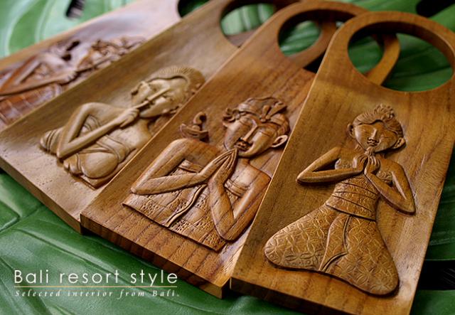 アジアンリゾートの心温まる木製(チーク)のドアプレートです。バリ人の男女をモデルにひとつひとつ丁寧に手で彫って作っています。