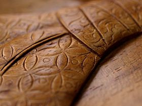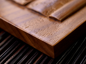 産地はインドネシア、タイ、ビルマなどの東南アジア。防水性、強度、耐久性にすぐれシロアリなどの害虫にも強く、湿気を吸うことによるひび割れや反りが出にくいため、家具材、彫刻材、船舶材、建築材などに用いられています。また、それらの特性に加えて、気品ある色調を持ち、世界の最高級材のひとつで、貴重な木材になっています。