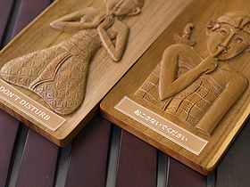 アジアンリゾートやバリのホテルでは、ドアの表札に木製のプレートが使われて、心温まる感じがします。
