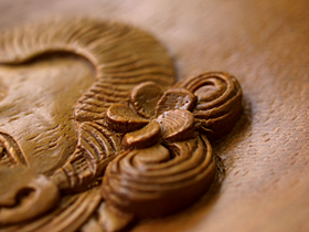 民族衣装の複雑な模様も彫りだけでうまく表現しています。
