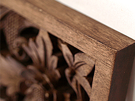 一枚の木の板を丁寧に彫って作られたお花のインテリアパネルです。とても細かく彫られた立体的なお花は芸術的な仕上がりです。
