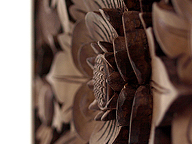 一枚の木の板を丁寧に彫って作られたお花のインテリアパネル。とても細かく彫られた立体的なお花は芸術的な仕上がりです。