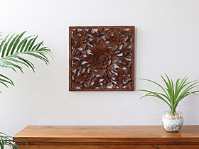 フラワーパネル(40×40cm) アジアン バリ 木製 ウッドレリーフ 壁掛け 壁飾り お花 バリ雑貨 インテリア ココバリ アジアン雑貨 バリ雑貨 ホテル リゾート おしゃれ インテリア