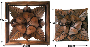 ハイビスカスデザインの木彫りのレリーフは2種類ございます。 左:枠付き木彫りのレリーフ(ハイビスカス)(このページ) 右:木彫りのレリーフ(ハイビスカス)