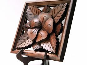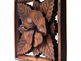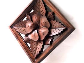 一枚の木の板を丁寧に彫って作られたハイビスカスのレリーフです。