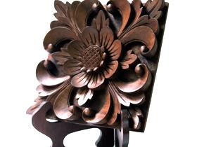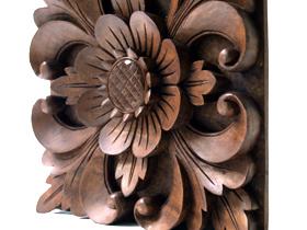 一枚の木の板を丁寧に彫って作られたお花のレリーフです。バリの家のウォールデザインでよく使われているお花になります。