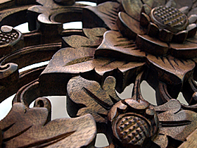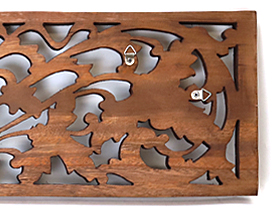 バリに行くとたくさんの種類を見かけますが、その中でも日本のお部屋にも合うように、お花のデザインをセレクトしました☆カラーはブラウンで、彫りの深さ、細かさが遠目からもよくわかります!