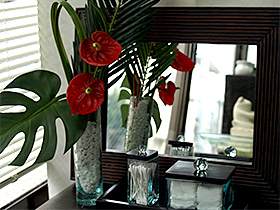 生花を飾るときは水を入れて、造花を飾るときはストーンを入れて飾るなど、コーディネートが広がります。