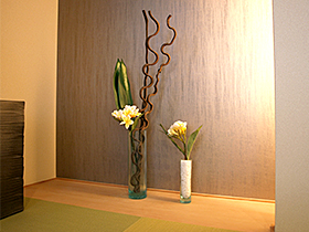 和室に飾ったイメージ。シンプルなデザインなので、飾る部屋を選びません。左:ベース【LL】 右:ベース【M】