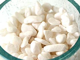 爽やかな白いナチュラルストーンをお付けします。バリでも実際にベースに使われているナチュラルストーンです。ナチュラルストーンを入れることで、大きな植物を入れたときにも倒れにくくなりますし、お花の角度や高さなど、バランスを調整しやすくなります。