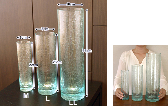 円柱形のガラス製フラワーベースです。シンプルな形なので、お花を選ばずに飾っていただけます。
