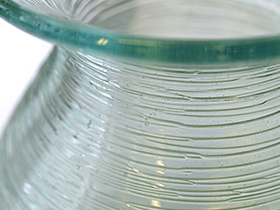 1本1本ガラスを巻きつけて、らせん状の模様をつけています。