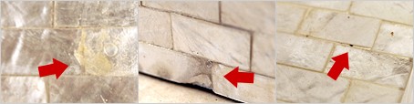 天然素材使用のため、小さなキズ・欠け・色むら・シェルの歪みやばらつきなど個体差がございます。これらは、シェル特有の輝きによって目立ちにくいため、使用中に気になることは少ないと思います。