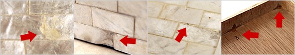 | ※職人によるハンドメイドのため、サイズや形などが多少異なることがございます。 ※天然素材使用のため、小さなキズ・欠け・シェルの歪みや色のばらつきなど個体差がございます。これらは、シェル特有の輝きによって目立ちにくいため、使用中に気になることは少ないと思います。 ※内側など目立たない部分に、接着剤がはみ出しや、数字など製作途中に付けられたと思われる印などがある場合がございます。 ![]() |
