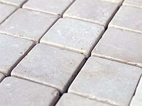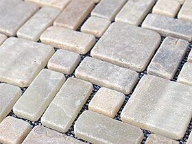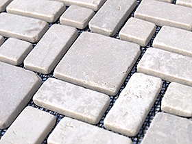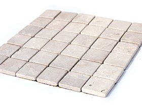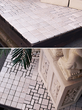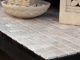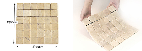 バリの天然石を加工して作ったマットです。石を加工し、タイルのようにネット状のシートに貼り合わせ、1枚のマットにして扱いやすくしています。
