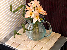 1枚をインテリアマットとして飾ったイメージ。天然の石の風合いがリゾート感をUPさせてくれます。
