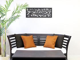 奥がこのページの商品。手前のクッションカバープレーン(Lightbrown)(40cm)とアートパネル(80cm×30cm)を飾ったイメージ。