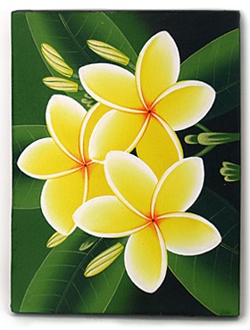 バリを代表する人気のお花プルメリア(フランジパニ)の絵画です。