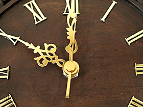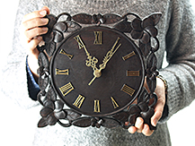 そして、美しい彫刻の高級感を損なわないように選んだのは、ローマ数字の文字符と針です。時間が分かりやすいように1時〜12時まで全てを配置しています。