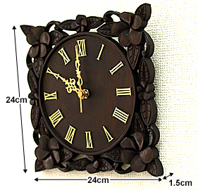 木製レリーフ時計 プルメリア24cm 掛け時計 おしゃれ 壁掛け アジアンテイスト バリ風 バリ雑貨 ハワイ 開店祝い 新築祝い 結婚祝い