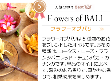 一方、純度100%ではないものは「アロマオイル」と呼ばれます。バリ島でも一部のオイルはエッセンシャルオイル(精油)として扱われていますが、本商品には成分表が添付されていないため、当店ではアロマオイルとして販売しております。肌への直接のご使用はお避けください。