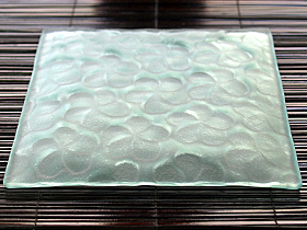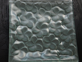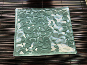 お花模様のバリガラスプレート(正方形)