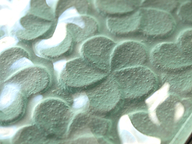 裏側の写真です。裏側からプルメリアのお花模様を型押しています。