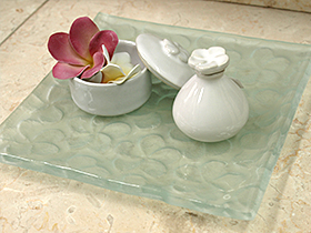 癒しの楽園バリ島のスパやリゾートホテルで使われているガラスプレートです。バリの爽快な海をイメージするグリーンがかったカラー。