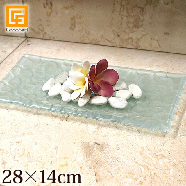 ガラス製プレート(フランジパニ)14×28cm 透明シール4つ貼付 アクセサリートレイ プルメリア バリ ハワイ バリ雑貨 インテリア ココバリ アジアン雑貨 バリ雑貨 ホテル リゾート おしゃれ インテリア