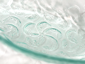 水を入れてプルメリアの造花(S)リアルを浮かべると、さらにバリのリゾート感を演出できます♪シンプルですが、美しいガラスの模様や輝きを楽しめます。